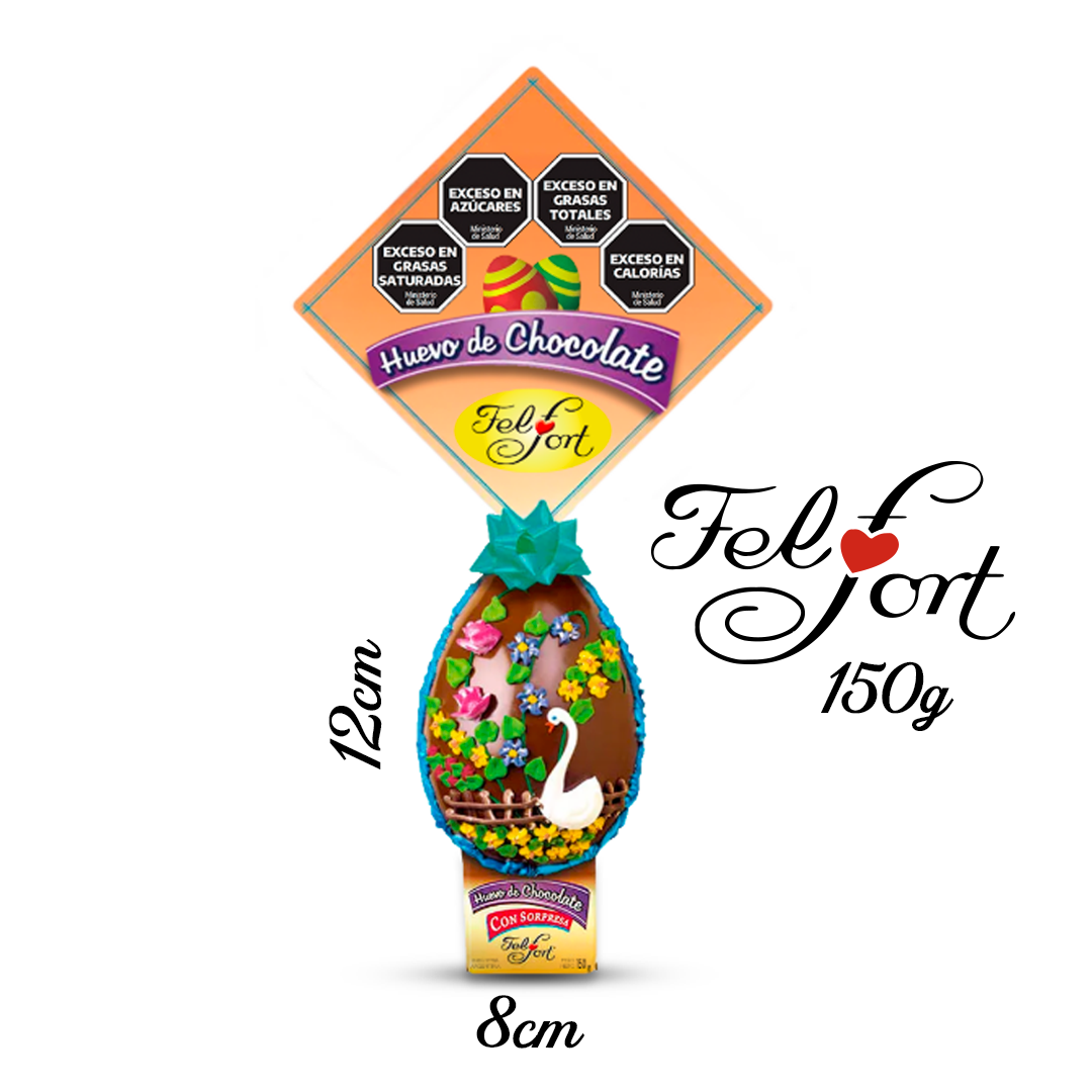 Huevo Felfort de chocolate con sorpresa 150g decorado artesanalmente con azúcar de colores.